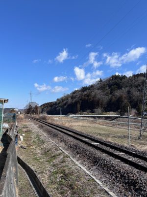 東を見れば水郡線の線路と青空。乗ってみたいな水郡線。